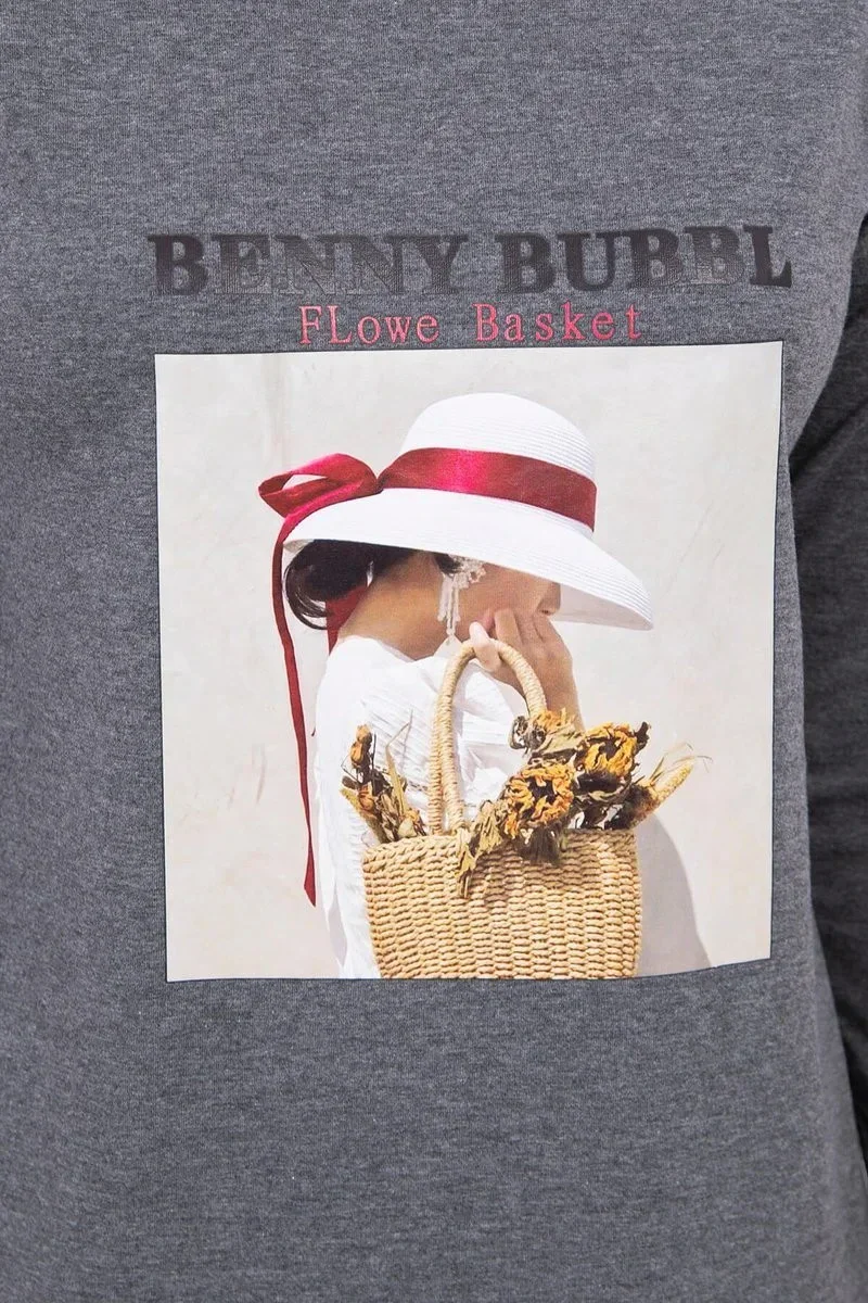 Šaty s potiskem košíku v grafitové barvě