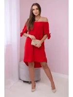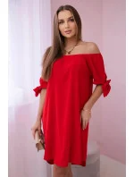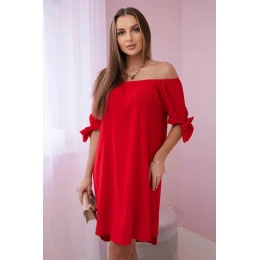 217-11 NEVA Trapézové šaty s vázáním na rukávech - MODRÉ