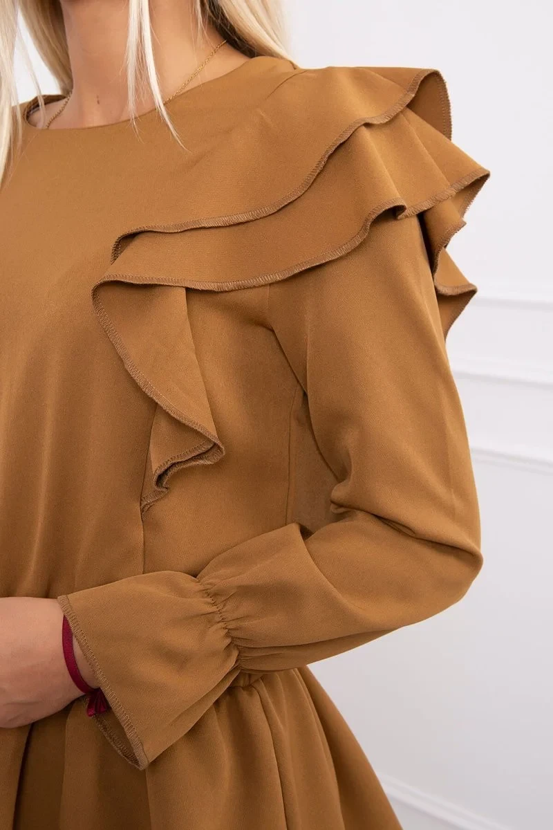 Šaty s vertikálními volánky camel