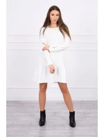 Dámské šaty s volánem a výstřihem do V ecru
