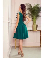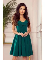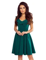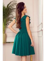 POLA - Dámské šaty v lahvově zelené barvě s volánky ve výstřihu 307-2