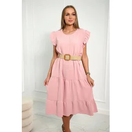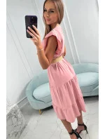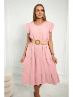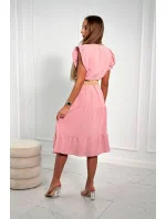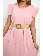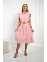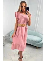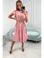 Elegantní dámské midi šaty v pudrově růžové barvě s volánkem 192-13