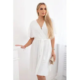 Šaty s vrstveným výstřihem ecru