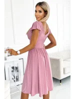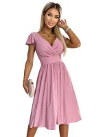 425-2 MATILDE Šaty s hlubokým výstřihem a krátkými rukávy - pudrově růžové s brokátem