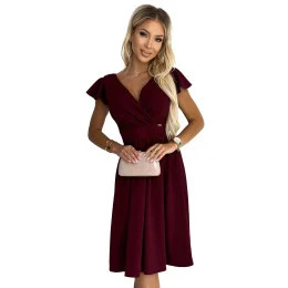 Matilde - rozevláté šaty s obálkovým výstřihem a krátkými rukávy. Vyrobeno z mírně elastické látky v zelené barvě. značka numoco. polský výrobek.