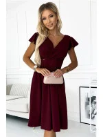 425-1 MATILDE Šaty s výstřihem a krátkými rukávy - BOTTLE GREEN