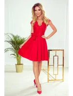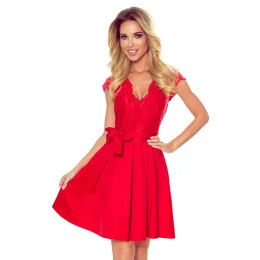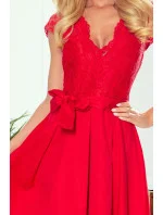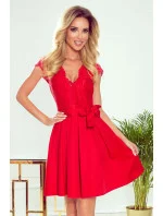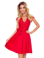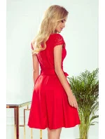 Dámské šaty 242-4 Anna NUMOCO - červená barva - elastický materiál - krátké rukávy - krajkový vrchní díl - sukně od boku směrem dolů se rozšiřuje