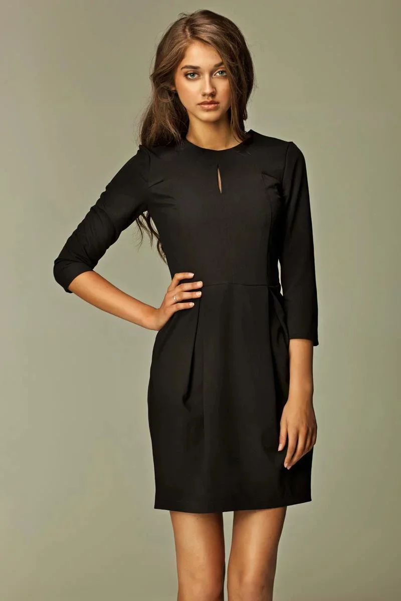 Dámská pletená šaty s dlouhým rukávem a asymetrickým výstřihem ZS3039 34956 černé - Kesi