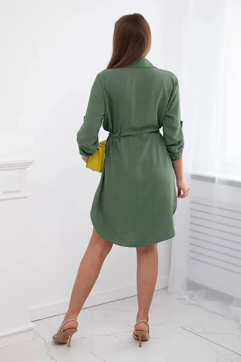 Šaty se zapínáním na knoflíky a zavazováním v pase khaki