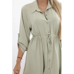 Šaty se zapínáním na knoflíky a zavazováním v pase tmavá máta
