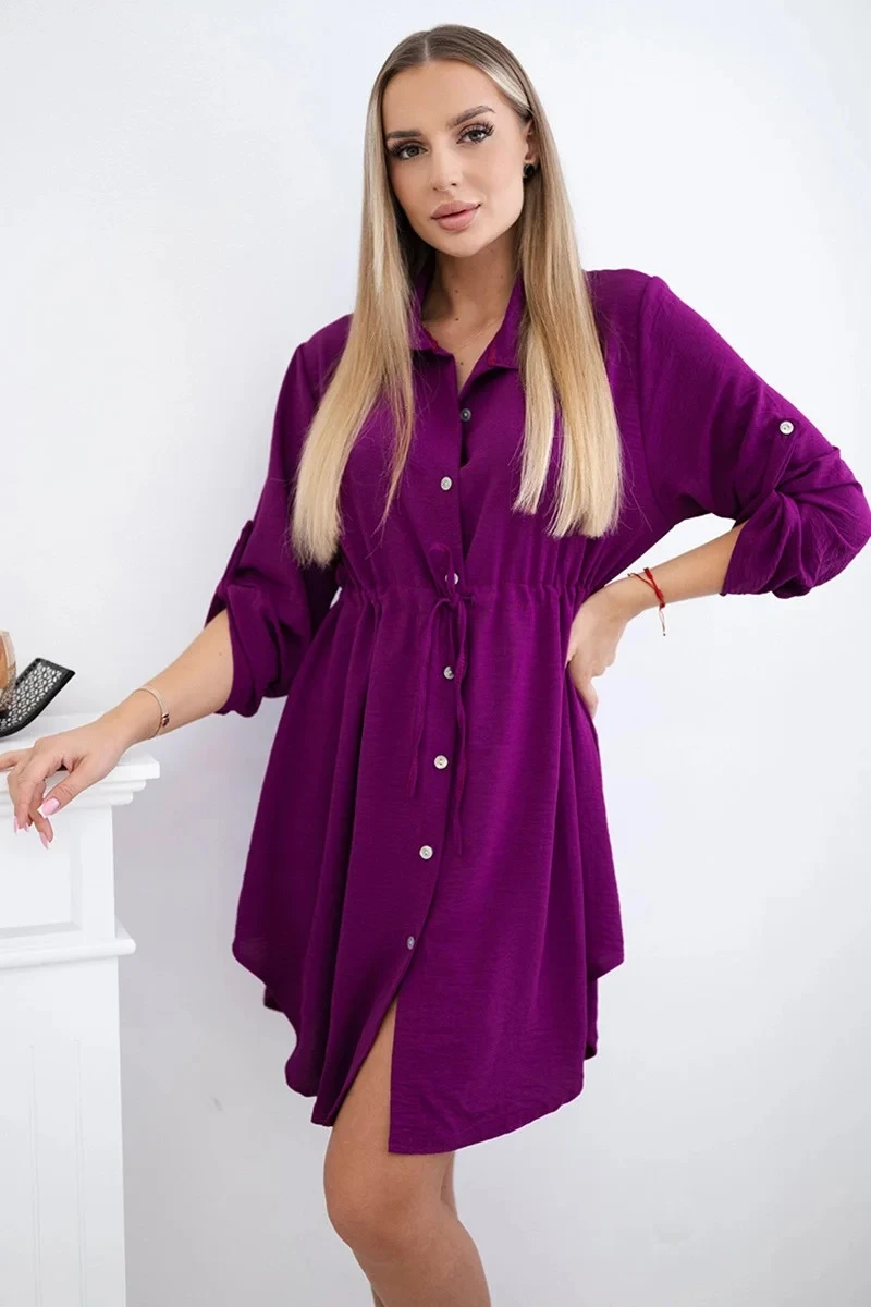 Šaty se zapínáním na knoflíky a zavazováním v pase tmavě fialová