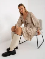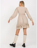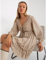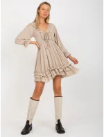 Béžové mini šaty s volánem v boho stylu OCH BELLA .