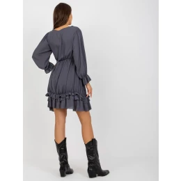 Grafitové boho šaty s volánkem v mini délce OCH BELLA .