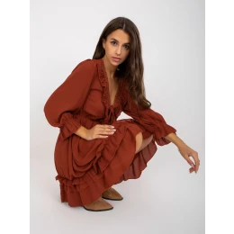 Cihlové mini šaty s volánem v boho stylu OCH BELLA .