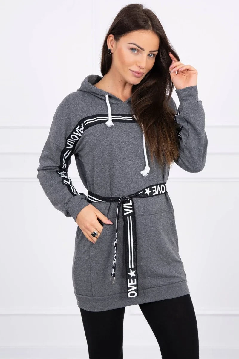 Představujeme vám pohodlné šaty. Šaty mají ozdobnou stuhu s nápisy. Šaty s kapucí a přední kapsou. Šaty jsou vyrobeny z vysoce kvalitního materiálu. Velikost je univerzální a vyhovuje dámám, které nosí velikost M, L nebo XL.