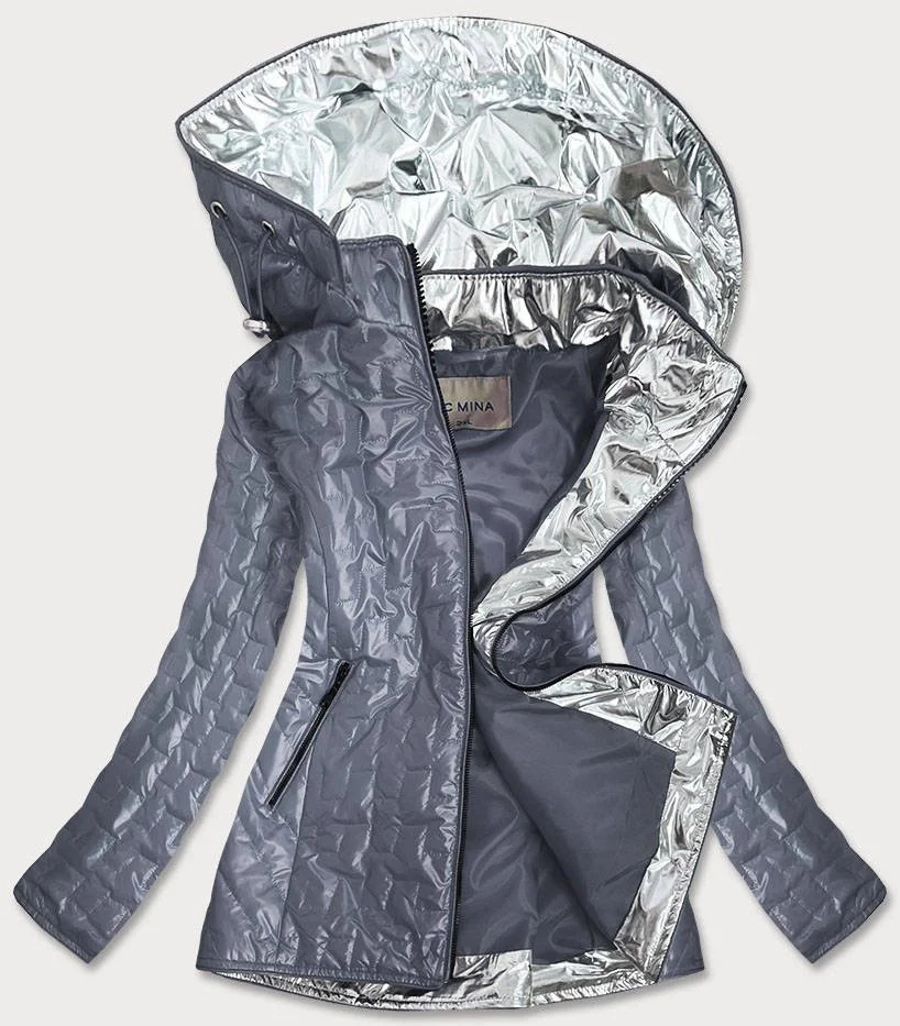 Šedá dámská bunda s ozdobnými vsadkami (MM50)