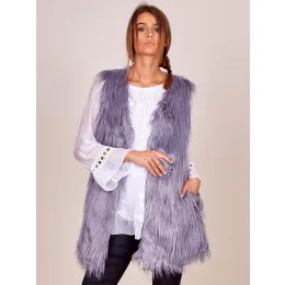 Šedá dámská vesta s delšími vlasy