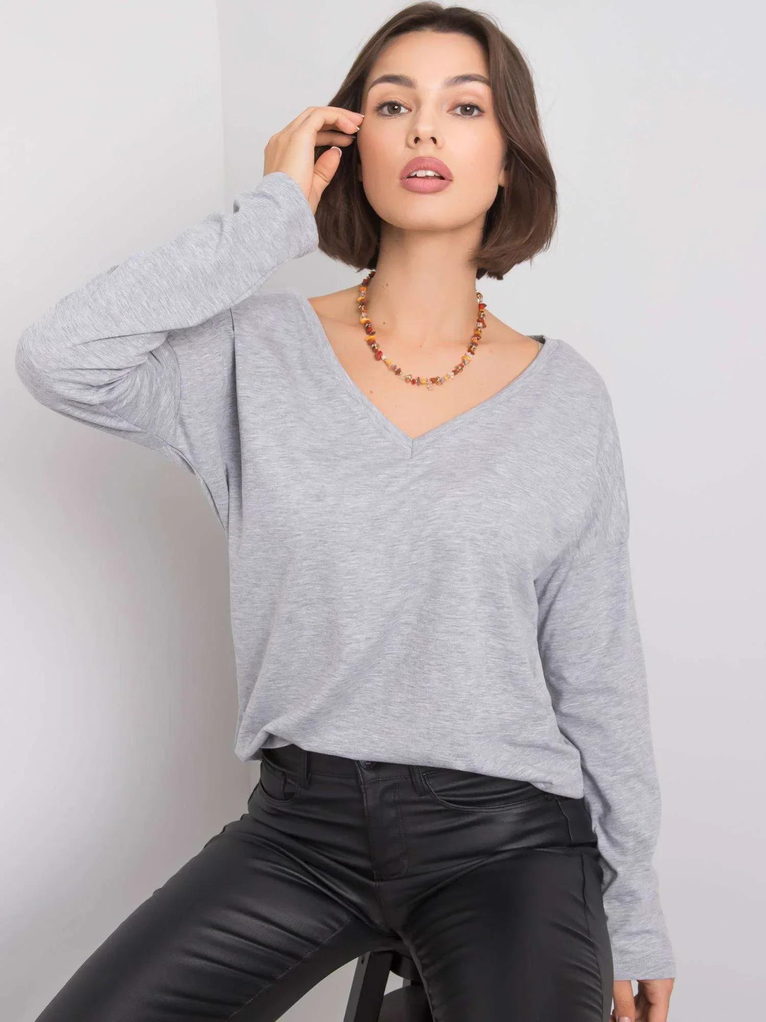 Šedá melanžová bavlněná halenka s dlouhým rukávem.