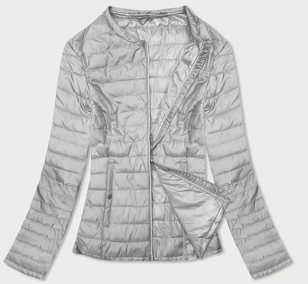 Šedá prošívaná bunda s kulatým výstřihem (W73)