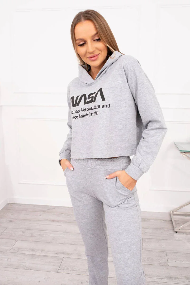 Představujeme vám sadu mikiny a kalhot s nápisem. Mikina má kapuci. Sada je vyrobena z vysoce kvalitního materiálu. Velikost je univerzální a vyhovuje dámám velikosti S, M nebo L.
