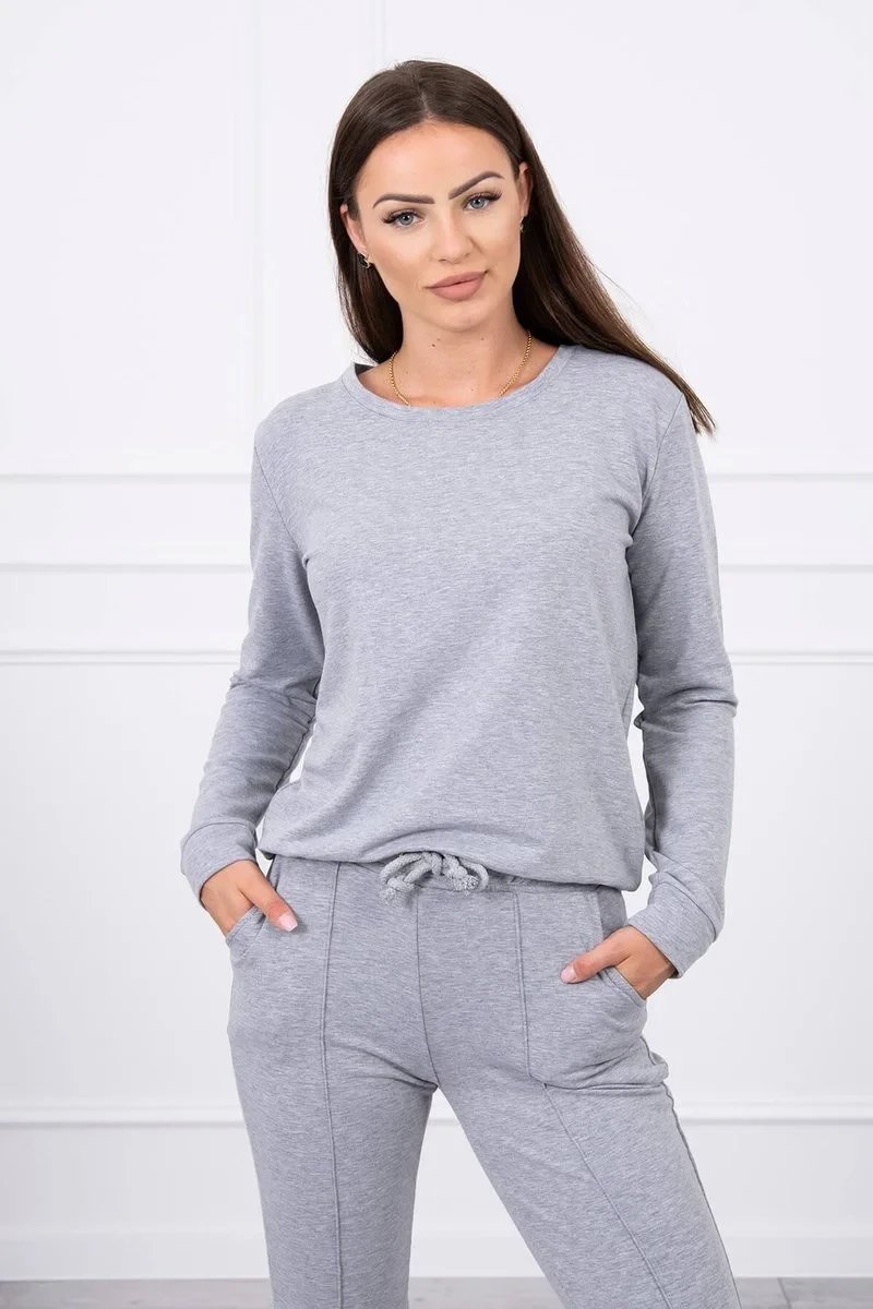 Představujeme vám sadu mikiny a kalhot. Obyčejná mikina bez potisků. Kalhoty s kapsami a zavazováním v pase. Sada je vyrobena z vysoce kvalitního materiálu. Velikost je univerzální a vyhovuje dámám velikosti S, M nebo L.