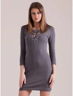 Světle šedé proužkované šaty se šněrováním