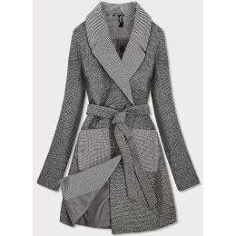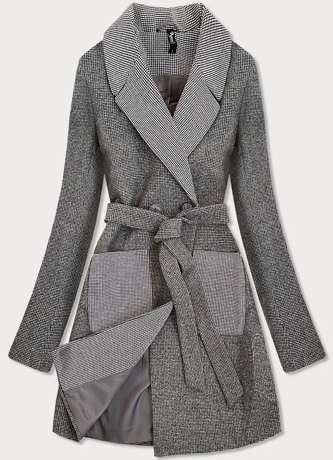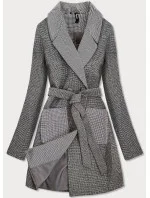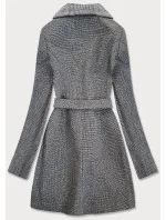 Šedý dámský károvaný dvouřadový kabát (2705)