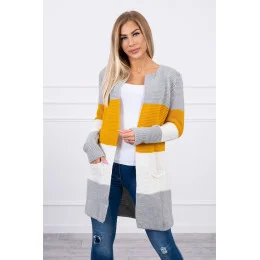 Představujeme vám dlouhý svetr se širokými pruhy. Svetr s dlouhým rukávem a rozepínáním. Na přední straně má dvě praktické kapsy. Velmi módní kombinace barev. Ideální pro jakýkoli styl. Svetr je vyroben z vysoce kvalitního materiálu. Velikost je univerzální a vyhovuje dámám ve velikostech M, L, XL.