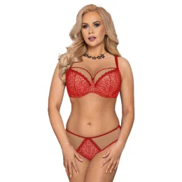 Krásná polovyztužená podprsenka, ušitá na nové konstrukci. Perfektně shromažďuje a drží poprsí, je vyrobena z krajky, plénu a pěny. Malá červená mašle uprostřed. Neodnímatelné, široké popruhy.