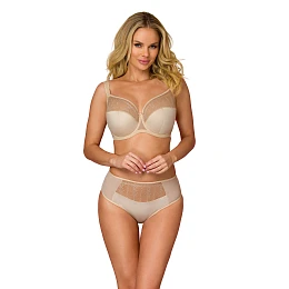Velmi elegantní podprsenka poloměkkého střihu pro ženy, které ocení sofistikované a zároveň velmi pohodlné spodní prádlo. Ozdobné výšivky na košíčcích a ozdobná ramínka dodávají podprsence eleganci a ženskost a lze ji použít jako základ pro mnoho stylizací. Polovyztužená podprsenka je ušitá z italského mikrovlákna spojeného s tylem (horní část košíčků, střed a obvod podprsenky). Široká ramínka pro lepší podporu poprsí, ozdobná, neodnímatelná a nastavitelná pro lepší přizpůsobení. Podprsenka krásně shrnuje a nadnáší poprsí a dodává mu přirozený, zaoblený tvar.