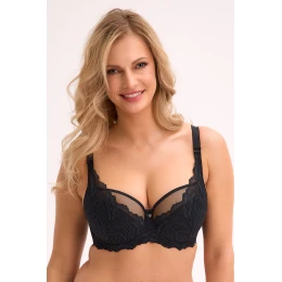 Podprsenka polovzpěvná s konstrukcí SS10, poskytující skvělé podporu a pohodlné nošení. Vybavena dolními a bočními kosticemi, které tvarují poprsí a zaručují ideální přizpůsobení. Částečně usazené košíčky jsou zevnitř podšité jemnou pěnou pro dodatečnou podporu a pohodlí. Subtilní síťové ozdoby dodávají spodnímu prádlu elegantní a smyslný charakter. Mezi košíčky je umístěn ozdobný mašlík, který přidává šarmu. Podprsenka je balena v elegantním krabičku, ideální také jako dárek.