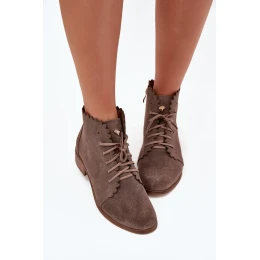 Semišové Boty Na Plochém Podpatku Tmavě Béžové Zazoo