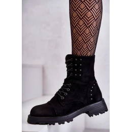 Perfektní boty pro chladné podzimní dny. Vpředu mají prošívání a svršek ozdobné cvočky. Zapínání na boku na zip a šněrování. Navíc je zesílená pata. Boty jsou nasazeny na plochém podpatku s nášlapem. Vnitřek byl zateplen dekou na boty. Pohodlné a pohodlné použití - měli byste je mít ve svém šatníku! Při výběru velikosti použijte tabulku velikostí.
