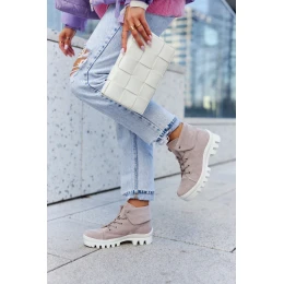 Trappery jsou vyrobeny z ekologického semiše s kulatým zavazováním na tkaničky. Jsou nasazeny na tlusté podrážce s módními výřezy v podrážce. Tuhá, zaoblená špička. Svršek ke kotníku, který je navíc mírně prohnutý. Skvělé boty pro ležérní styling. Mají měkkou stélku z ekokůže a vyztuženou patu. Perfektní boty na jaro, musíte je mít! Při výběru velikosti použijte tabulku velikostí.