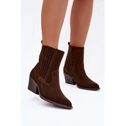 Semišové dámské boty kovbojky na podpatku zateplené čokoládové Dylira