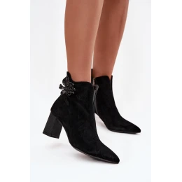 Semišové dámské boty na sloupkovém podpatku s ozdobou D&A – černé