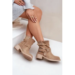 Semišové dámské kotníkové boty na nízkém blokovém podpatku s pásky Zazoo 3644 béžové