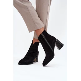 Semišové dámské kotníkové boty na podpatku s rytím zateplené Vinceza 66801 černé