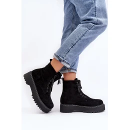 Semišové dámské kotníkové boty Trapper na silné podrážce se zipem, černá Edivame