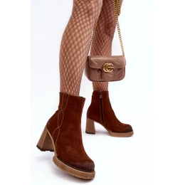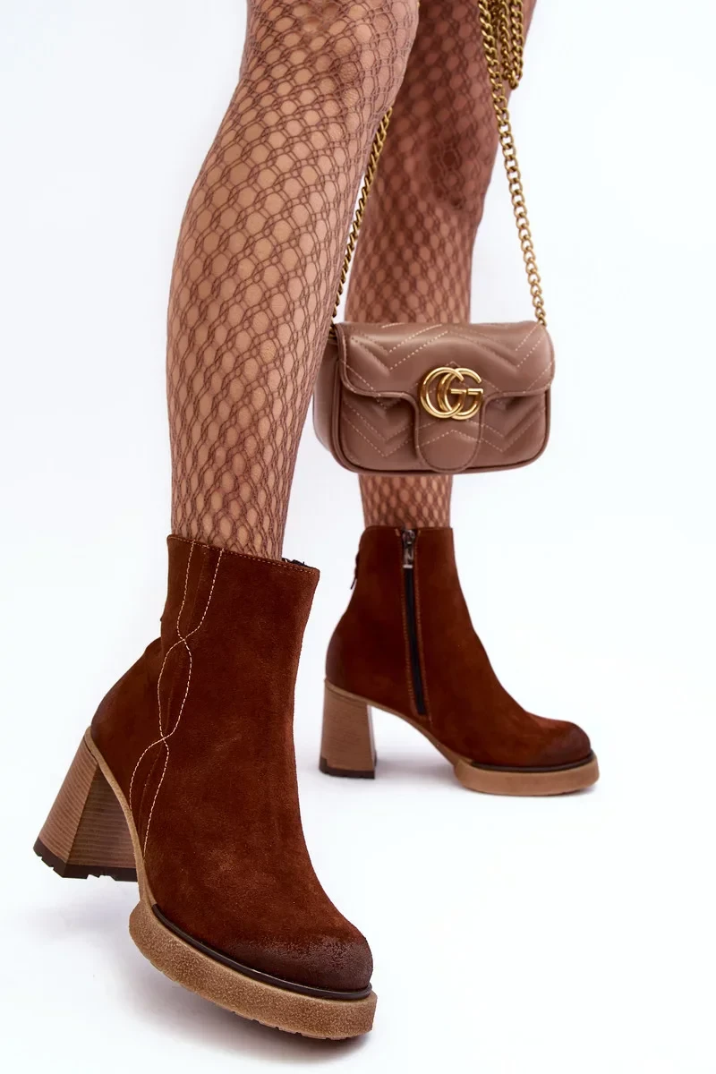 Semišové dámské kozačky na vysokém podpatku Hnědá Lemar Remilda