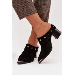 Dámské nazouváky vyrobené z přírodního semiše jsou výjimečnou volbou pro ženy, které mají rády módní akcenty inspirované stylem western. Měkká kůže dodává botám elegantní vzhled a zajišťuje pohodlí při nošení, takže model je ideální na zvláštní příležitosti. Charakteristickým prvkem je ohnutá horní část, která zdůrazňuje originální tvar a dodává jedinečný styl. Špičaté nosy zdobené zlatým detailem přinášejí jemný, elegantní akcent, opticky zeštíhlující nohu. Boty jsou postaveny na stabilním sloupkovém podpatku, který zajišťuje pohodlí při chůzi a jemně zvýrazňuje siluetu. Tyto působivé nazouváky s večerním charakterem skvěle doplní outfity s šaty, sukněmi nebo elegantními kalhotami. Při výběru velikosti se řiďte tabulkou velikostí.