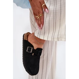 Semišové Dámské Pantofle S Přezkou Big Star RR274A384 Černé