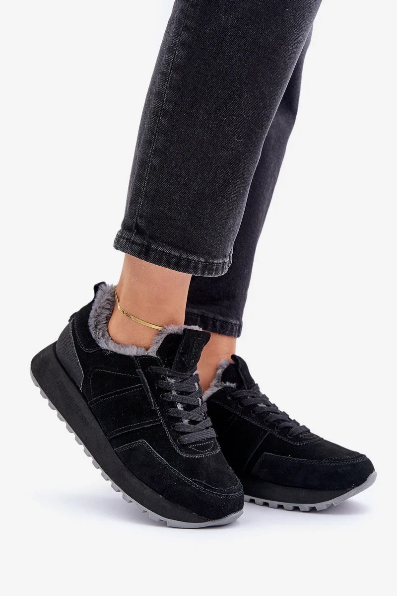 Semišové dámské tenisky s kožíškem a lesklým prvkem Big Star OO274580 Hi-Poly System černé