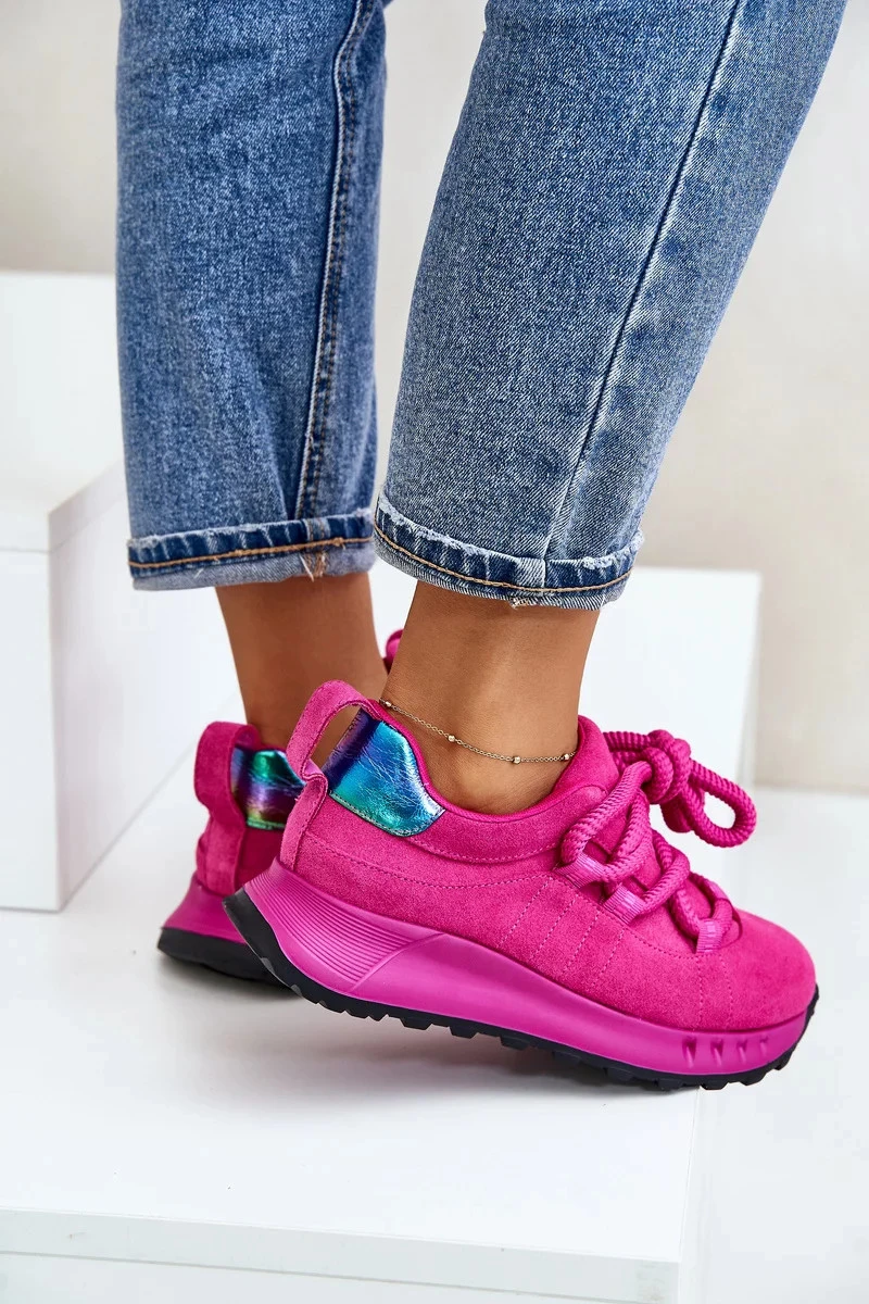 Semišové Dámské Tenisky S Tlustým Šněrováním Artiker Fuchsie