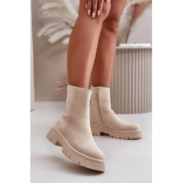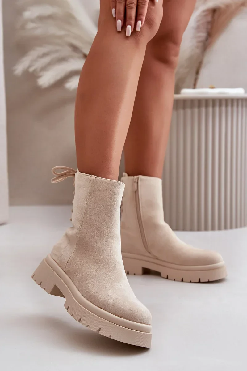 Semišové kotníkové boty na plochém podpatku šněrovací béžové Lakyta