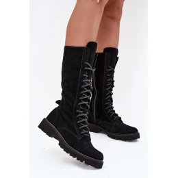 Semišové kotníkové boty se šněrováním do půli lýtka Zazoo 3103 Černé