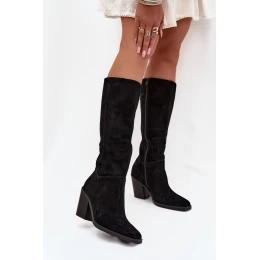 Semišové Kozačky Na Podpatku Se Zipem Černé Lissara