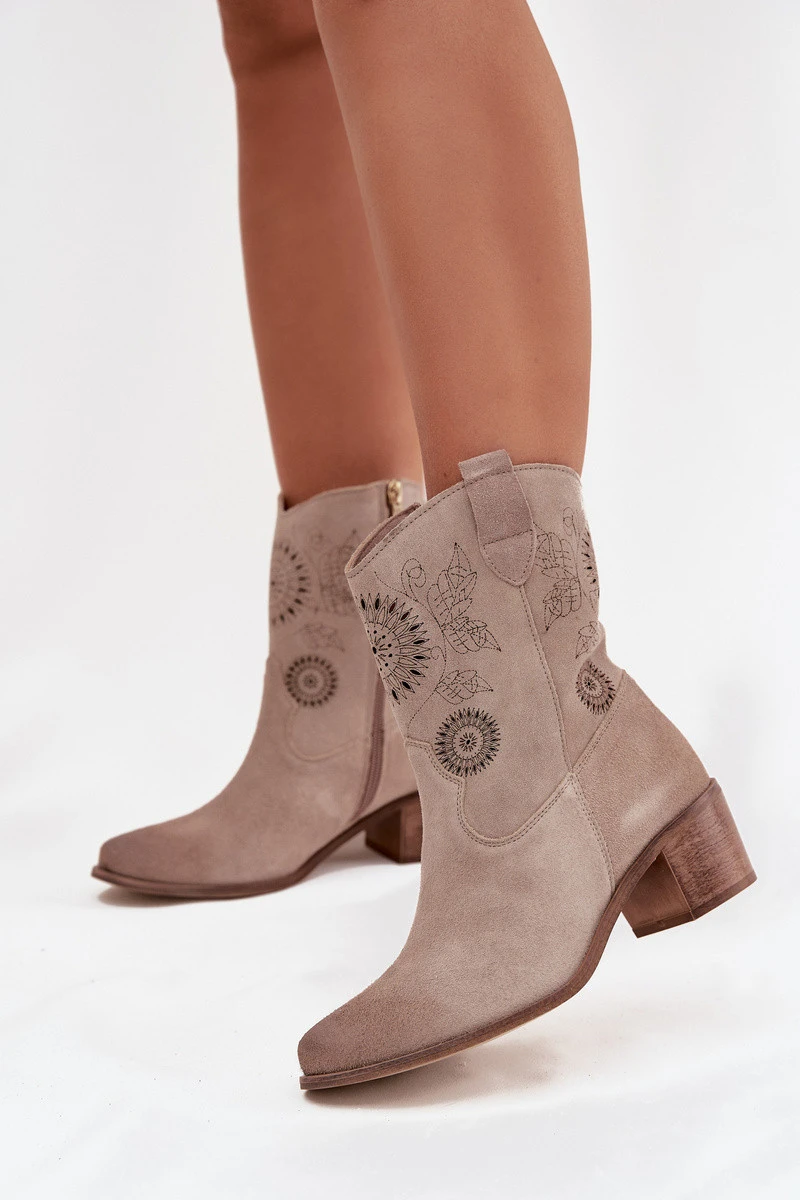 Semišové kožené dámské boty s otvory na podpatku Zazoo 3844 Cappuccino