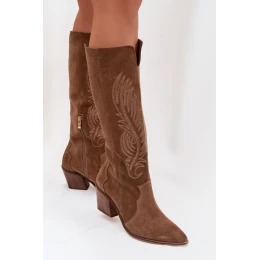 Kozaky kovbojky vyrobené z přírodního semiše jsou vhodné pro ženy, které ocení módní vzhled a pohodlí. Měkká kůže jim dodává elegantní charakter a zároveň zajišťuje pohodlné nošení. Model s našitým zipem na spodní straně límce usnadňuje obouvání a zvyšuje funkčnost. Stabilní, zúžený podpatek ve tvaru sloupku zaručuje pohodlí při chůzi a jemně zeštíhluje postavu. Špičaté nosy dodávají celku výraznost a podtrhují westernový charakter bot. Jsou to stylové kozaky, které skvěle doplní jak šaty, tak kalhoty, a vytvářejí působivé každodenní i slavnostní outfity. Při výběru velikosti se řiďte tabulkou velikostí.