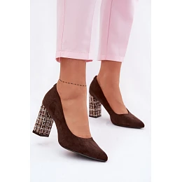 Semišové lodičky na ozdobném sloupku Sergio Leone PB216 Hnědé